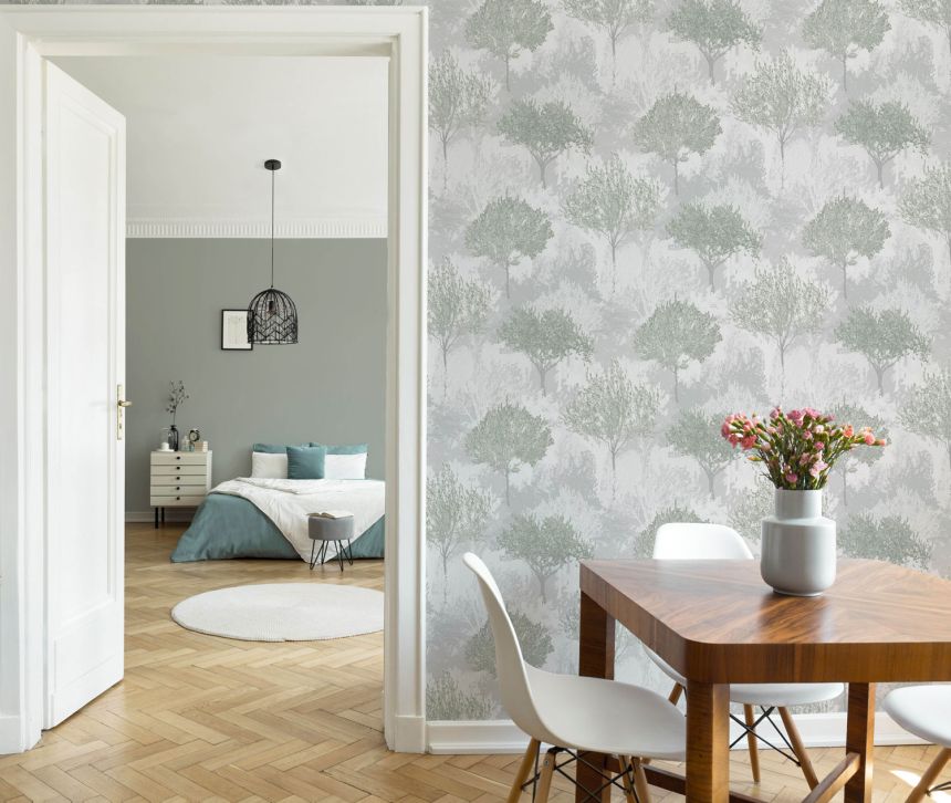 Sivá vliesová tapeta na stenu, stromy, 121799, Solace, Superfresco Easy Sivá vliesová tapeta na stenu, stromy, 121799, Solace, Superfresco Easy