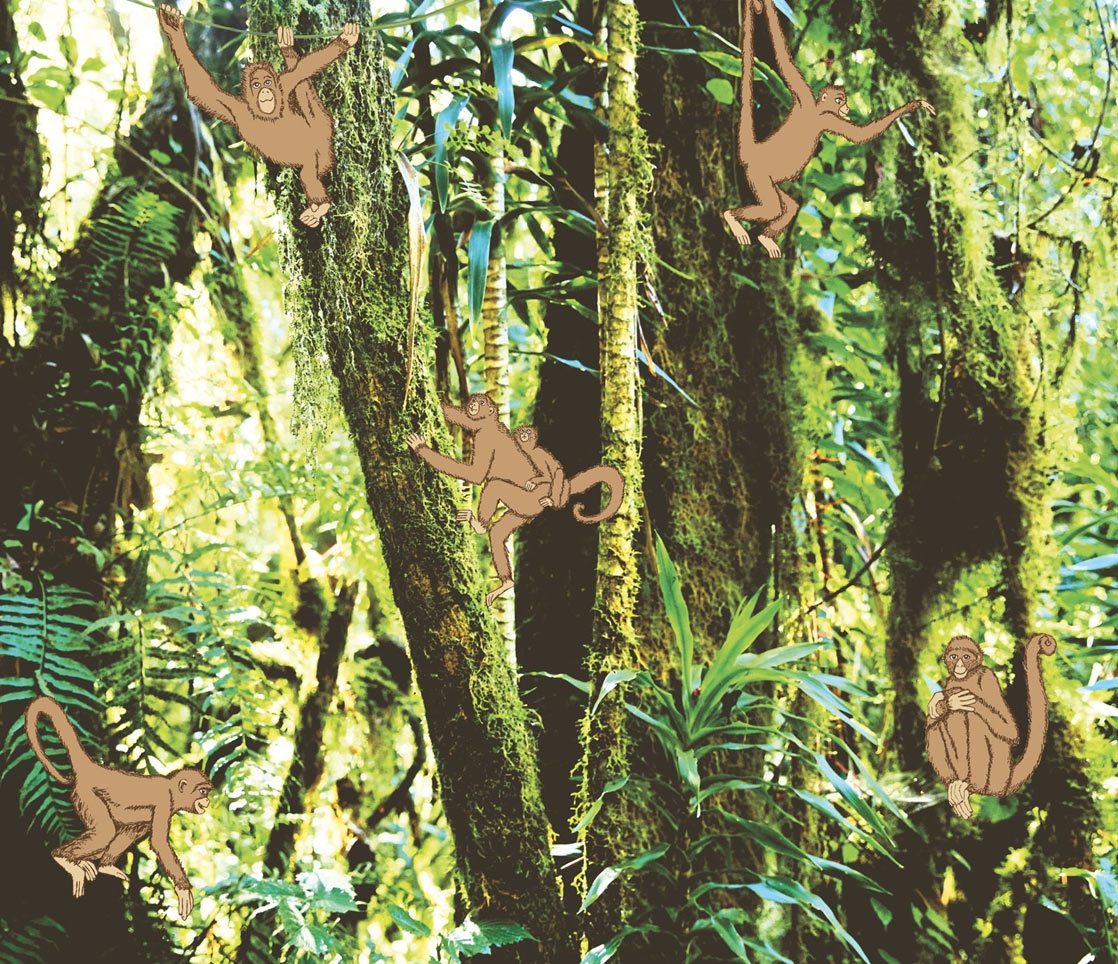 Opice v pralese - dětská obrazová tapeta na vliesovém podkladu.
