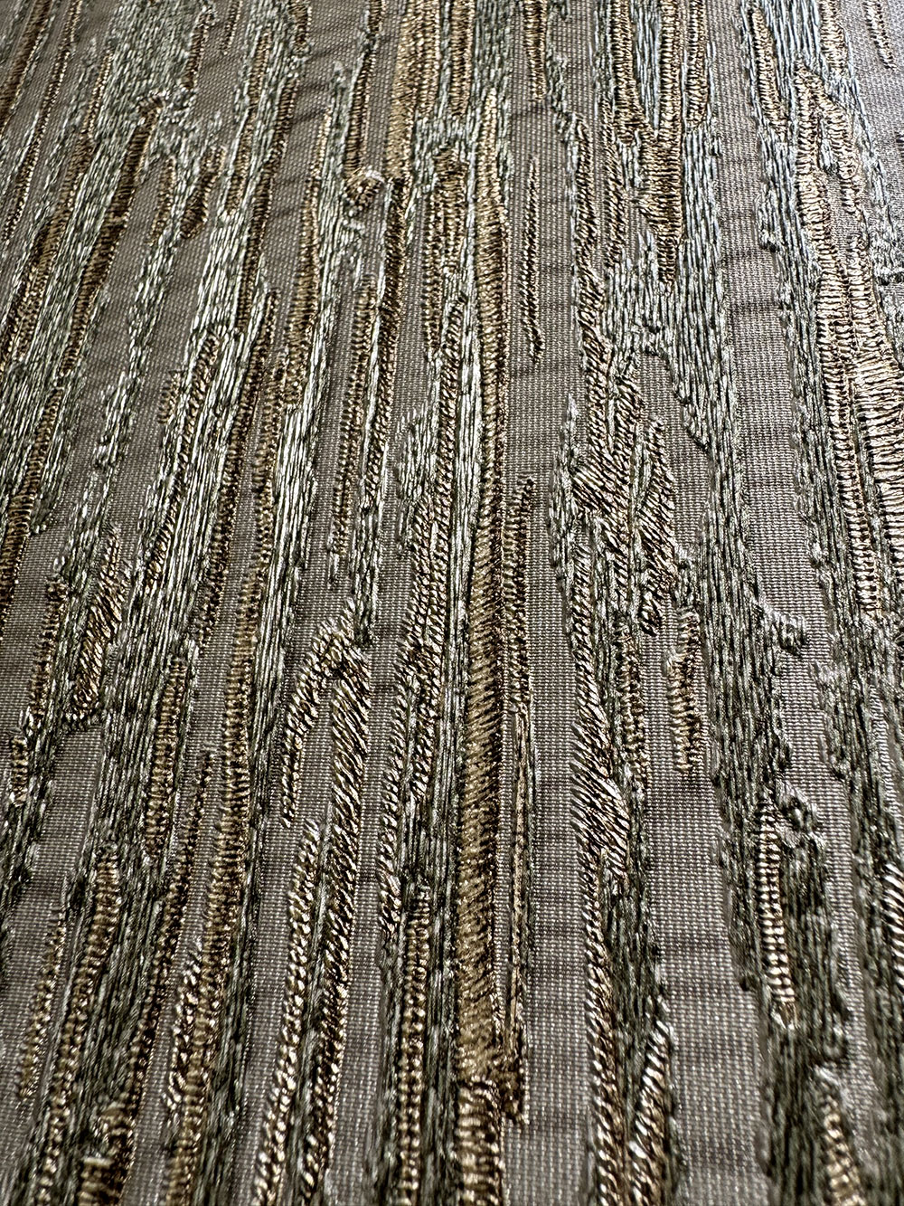 Luxusné vliesové tapety s vinylovým povrchom - dizajn hodvábnej textílie s jemným pololeskom s metalickými plastickými textúrami v odtieňoch metalickej zelenej, zlaté línie. Farby a odlesky na tapete sa menia podľa dopadu svetla.