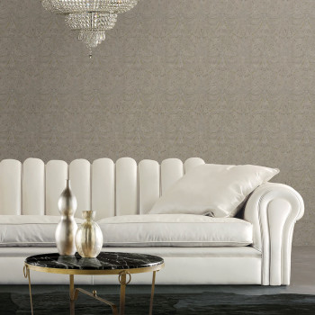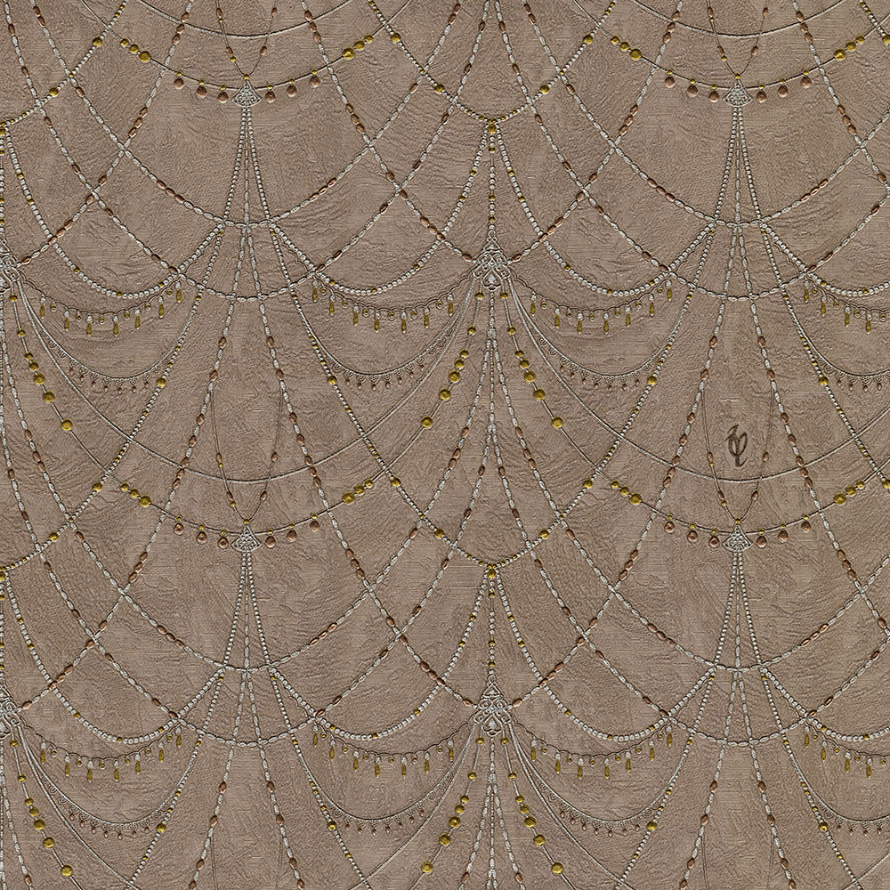 Luxusná vliesová tapeta s motívom metalických korálikov na hnedom štukovom podklade. Šírka role 1,06 m.