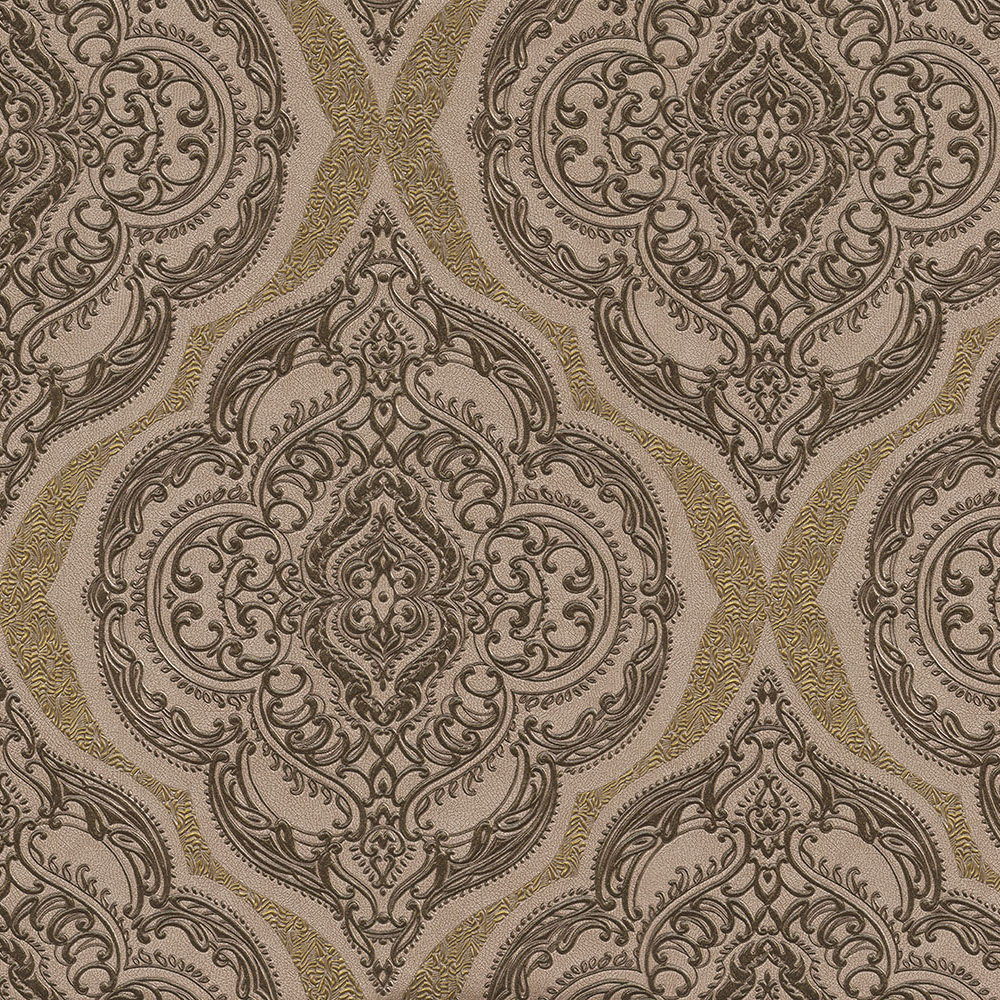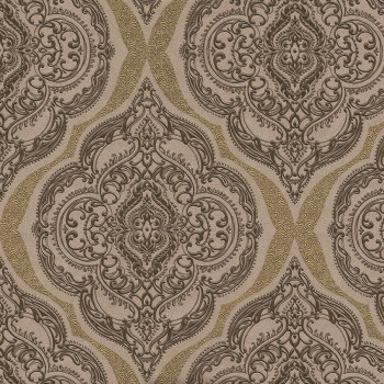 Šírka role 1,06 m. Luxusné vliesové tapety s vinylovým povrchom inšpirované krásou orientálnych látok – veľký ornamentálny vzor v odtieňoch metalickej hnedej a zlatej. Ľahko ich skombinujete s príslušnými tapetami.