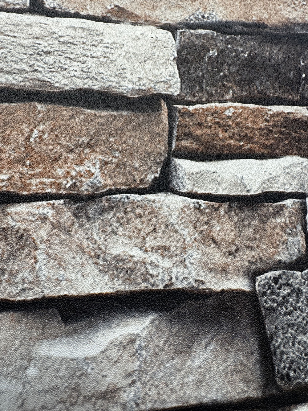 Umývateľná vinylová tapeta na stenu s dekórom sivého kameňa, imitácia kamenného múru.