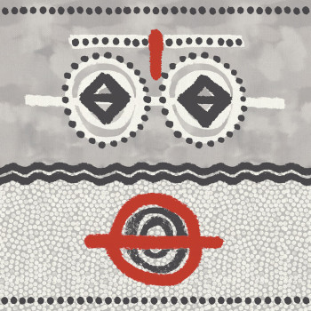 Netradičná fototapeta s etnickým motívom v odtieňoch sivej a červenej, skvele sa dopĺňa s panelom UC 51102.