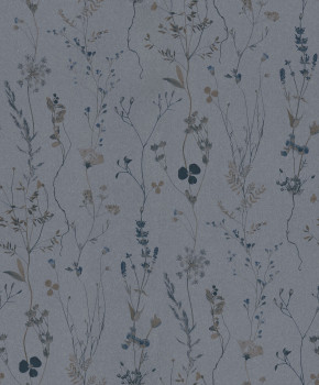 Modro-sivá vliesová tapeta s vinylovým povrchom, vzor jemných lúčnych kvetov. Foto interiéru je iba ilustračné - odlišné farby.