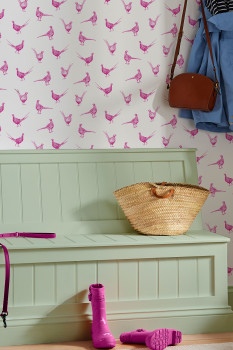 Bielo-ružová vliesová tapeta s bažantmi, 118551, Joules, Graham&Brown