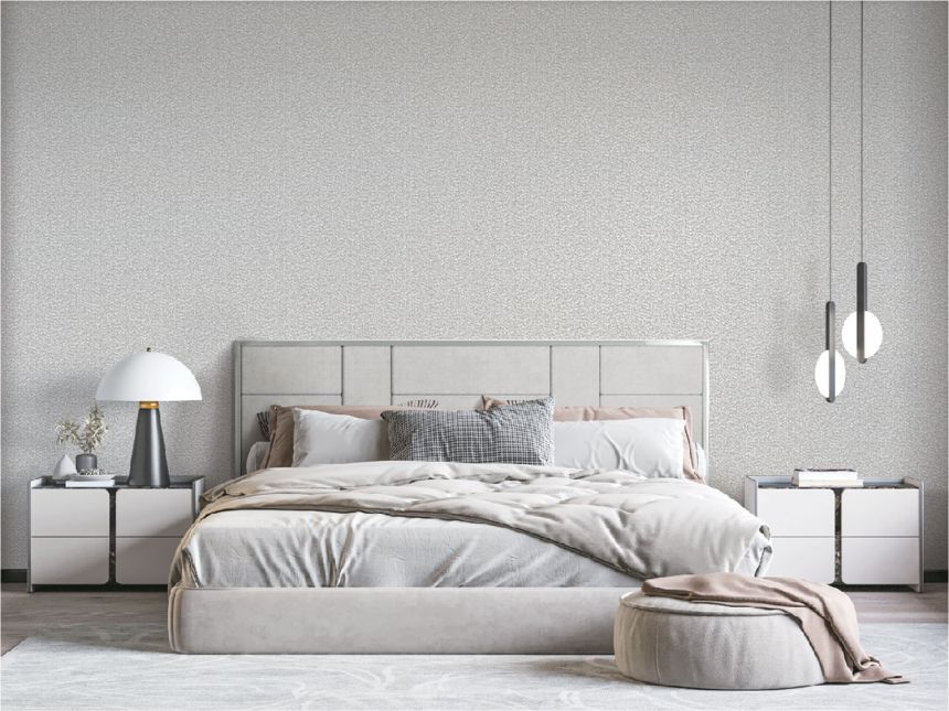 Elegantná sivá štruktúrovaná vliesová tapeta s vinylovým povrchom, metalické plôšky.