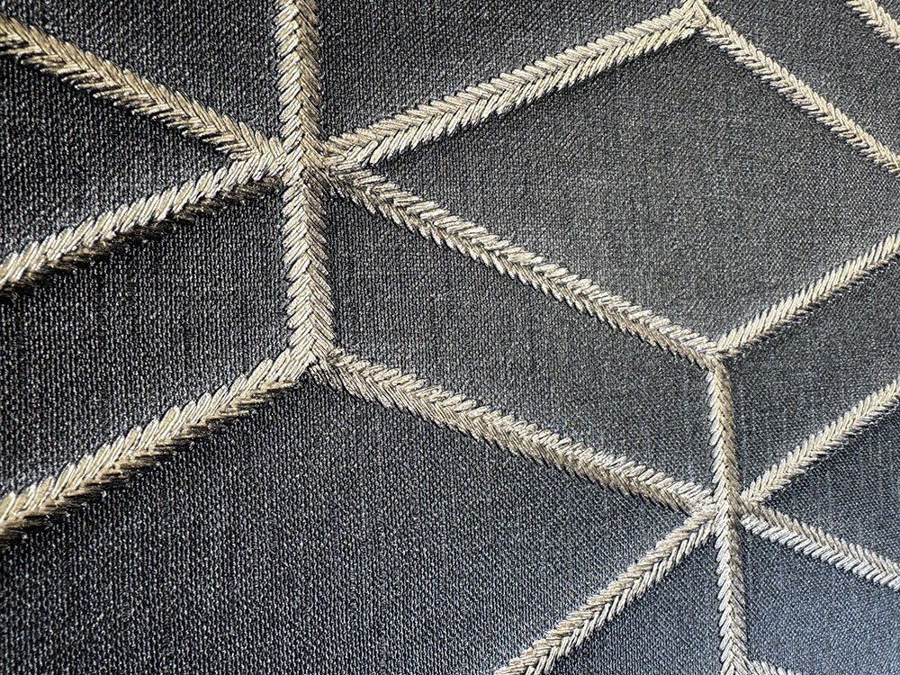 Luxusné vliesové tapety s vinylovým povrchom - dizajn hodvábnej čiernej textílie s jemným pololeskom, obrysy vzoru - metalické kovovo zlaté "prešívanie".