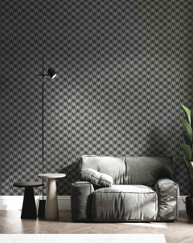 Luxusná jemne štruktúrovaná vliesová tapeta s vinylovým povrchom, vzor kohútia stopa v odtieňoch sivej.