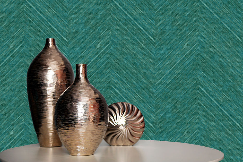 Vliesová tapeta s vinylovým povrchom, látková textúra, cik cak vzor, odtiene zelenej.