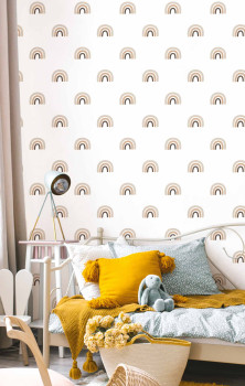 Biela vliesová tapeta na stenu, dúha v odtieňoch hnedej a zlato- béžovej.