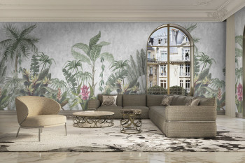 Luxusná vliesová obrazová tapeta na stenu, motív paliem a tropických rastlín.