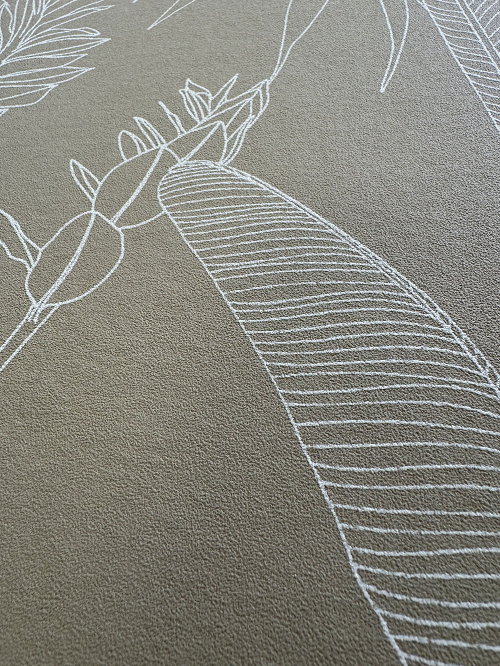 Béžová vliesová tapeta na stenu, obrysy tropických listov.