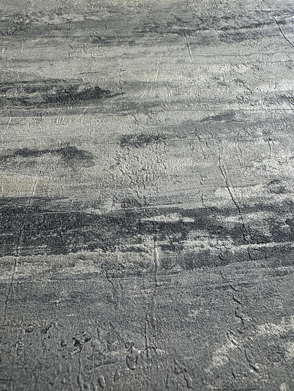 Efektná, sivo-strieborná, žíhaná vliesová tapeta na stenu.