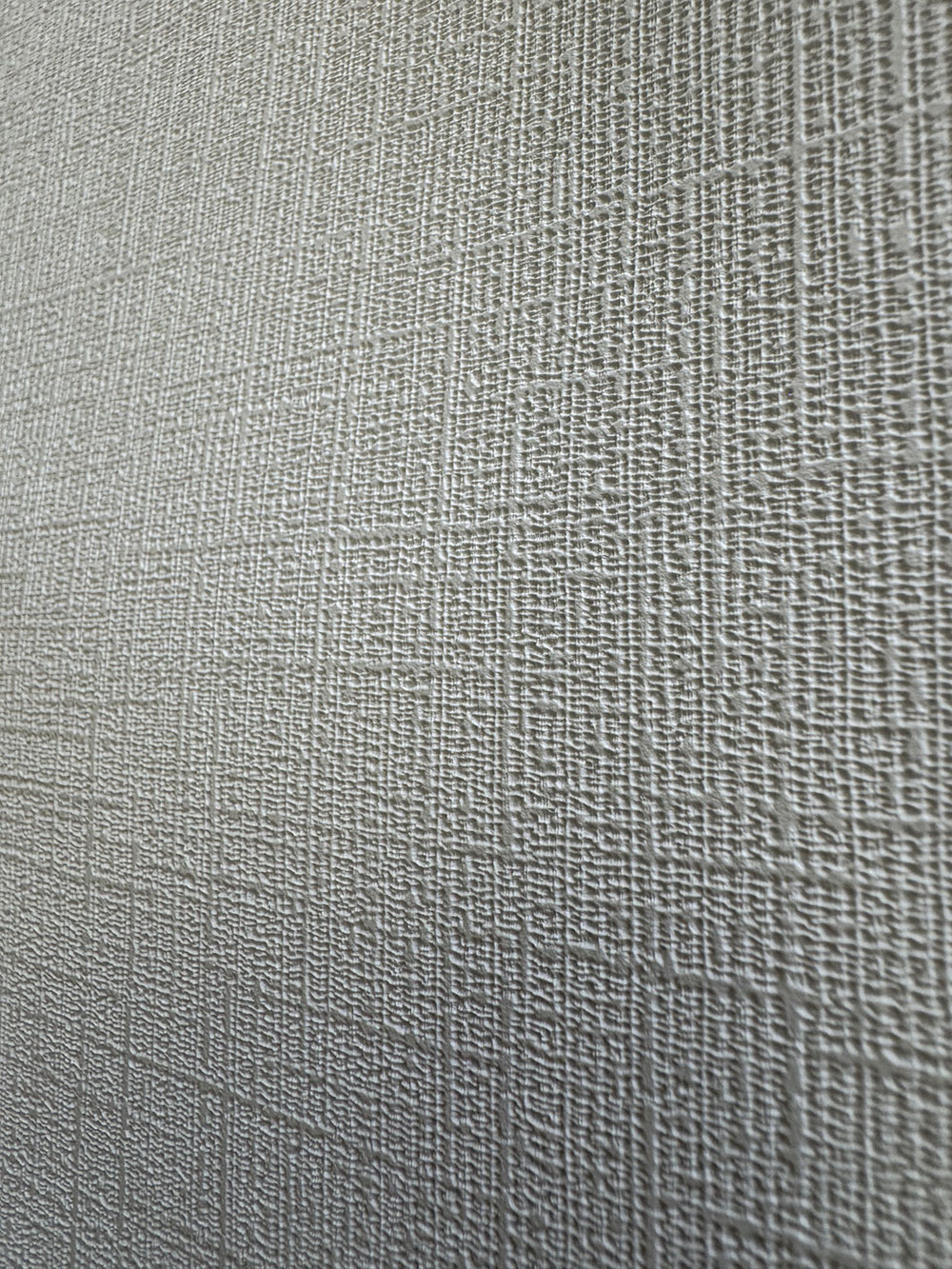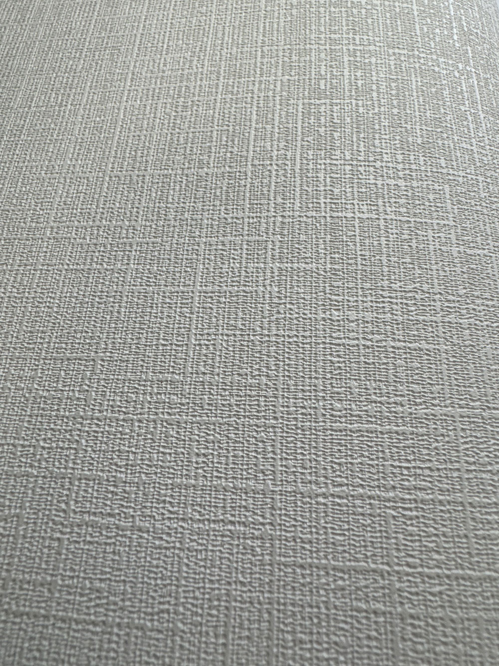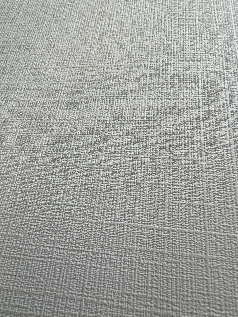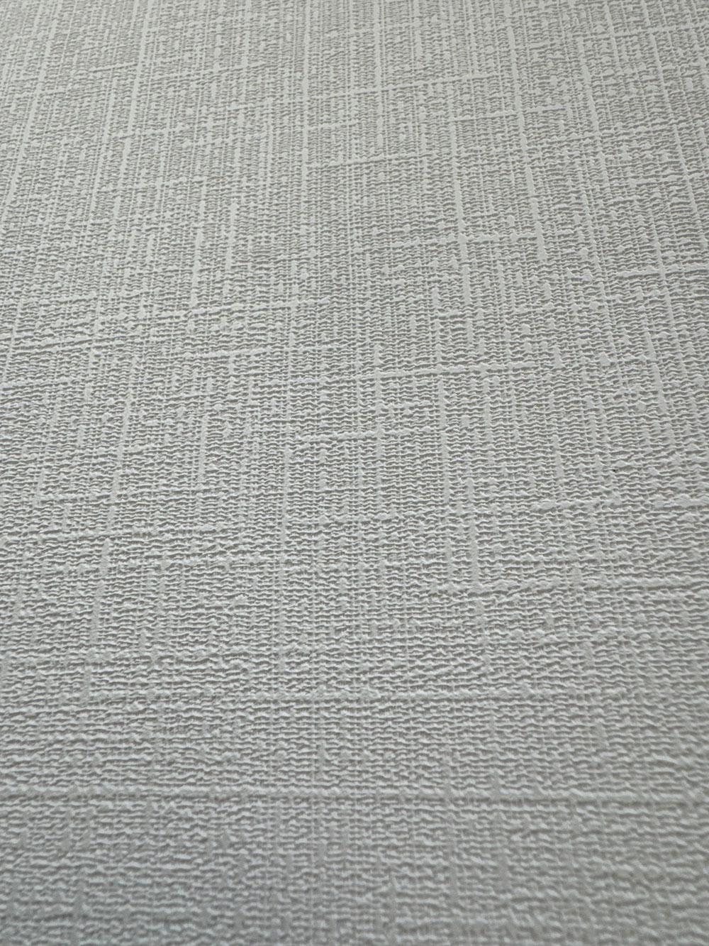 Biela tapeta s vinylovým povrchom, jemná textilná štruktúra.