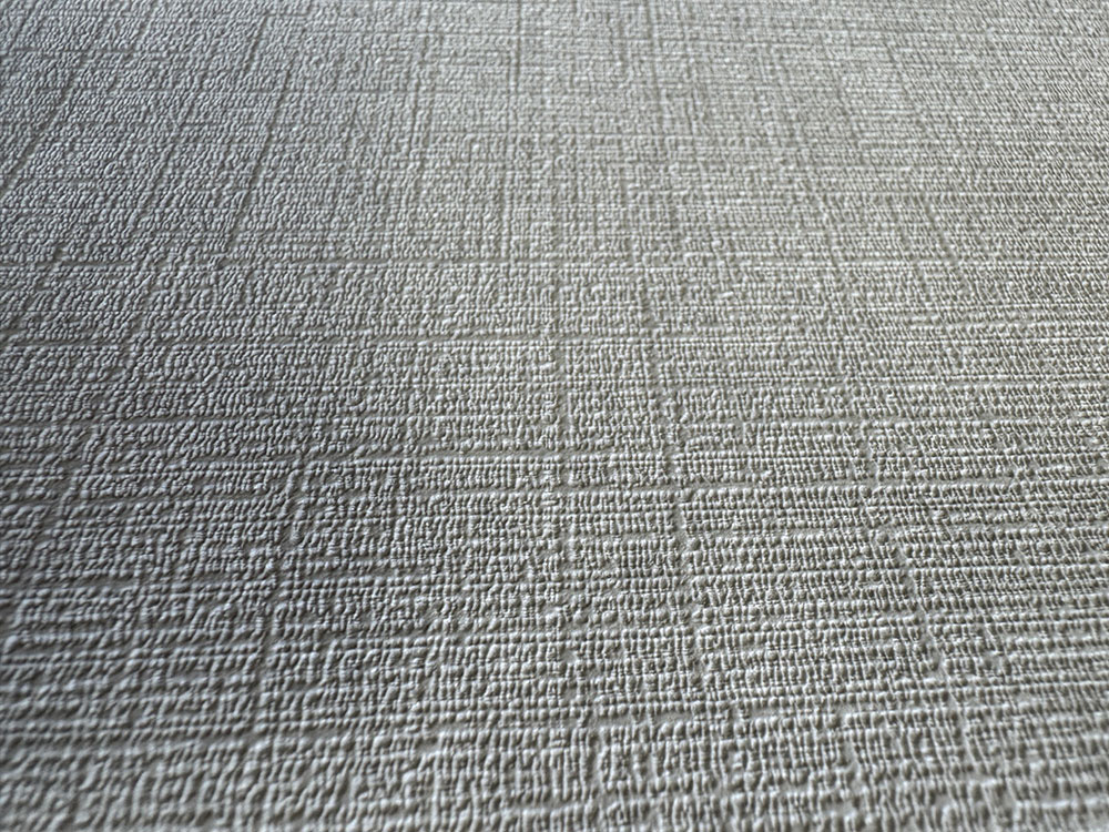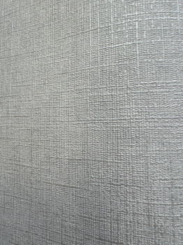 Sivá tapeta s vinylovým povrchom, jemná textilná štruktúra.