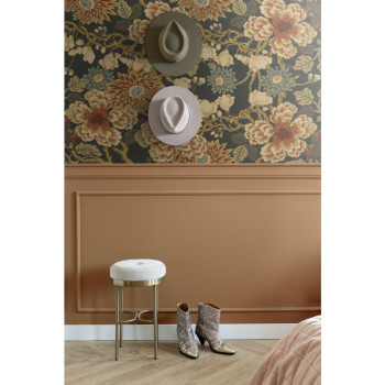 Kvetinová vliesová tapeta na stenu, odtiene hnedej, béžovej a čiernej.