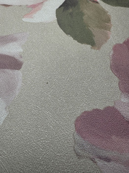 Vliesová tapeta s vinylovým povrchom, kvetinový vzor v odtieňoch béžovej, ružovej, zelenej-jemná vláknitá textúra.