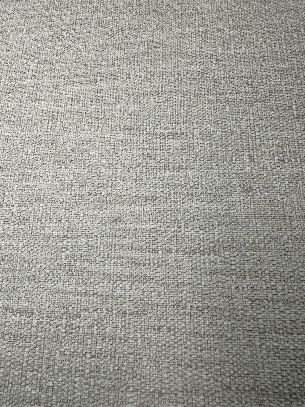 Vliesová tapeta s vinylovým povrchom, imitácia hrubšej látky v odtieňoch sivo-béžovej.