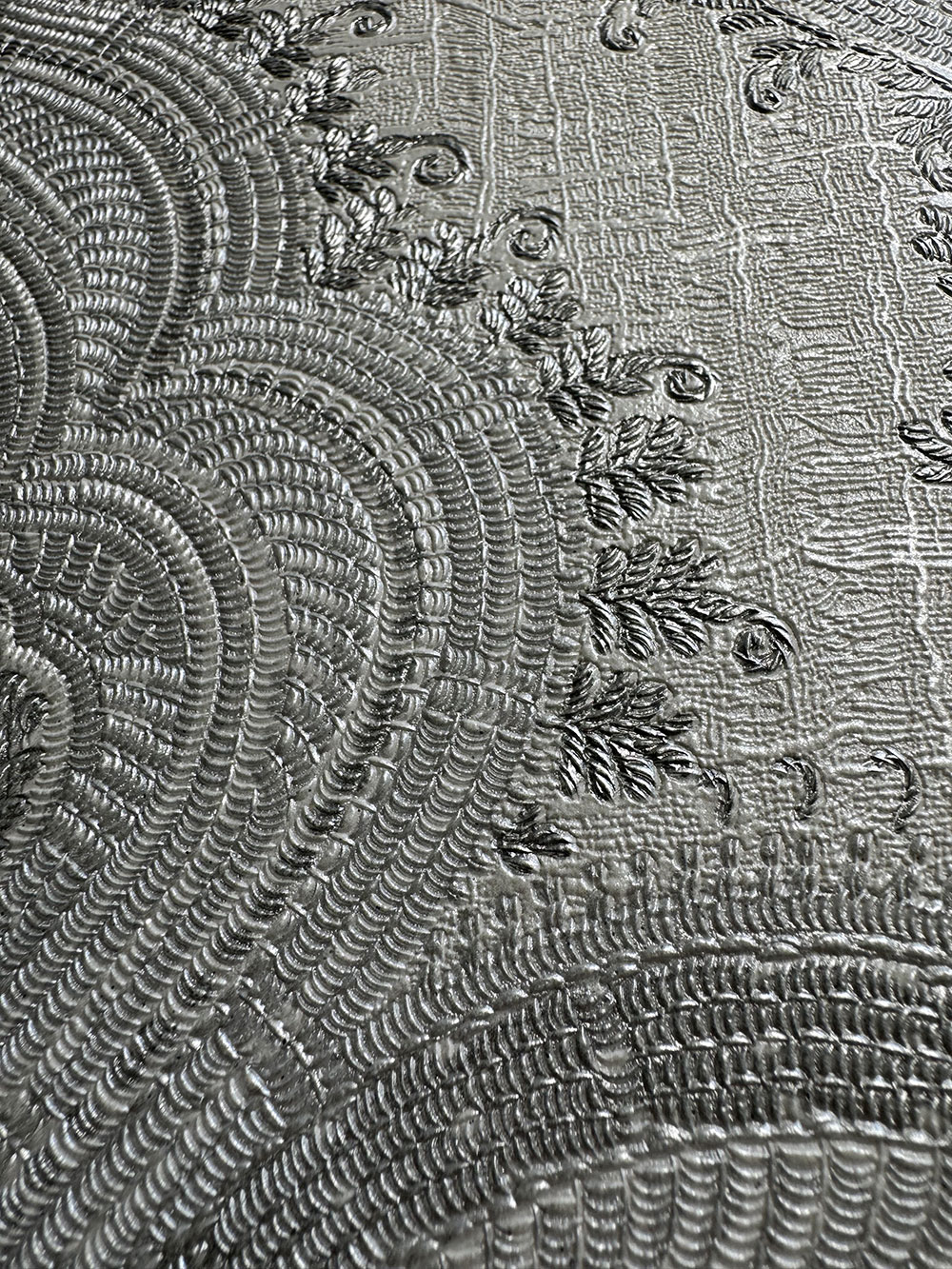 Luxusná vliesová tapeta s vinylovým povrchom, zámocký vzor v bielej a sivo-striebornej.