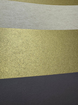 Vliesová tapeta na stenu, pruhy v odtieňoch hnedej, čiernej, okrovej a zlatej, mat, pololesk.