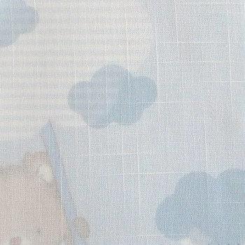 Dekoračný voál Treboli, kombinovateľný s tapetami kolekcie Treboli. Modré obláčiky na bielom podklade.