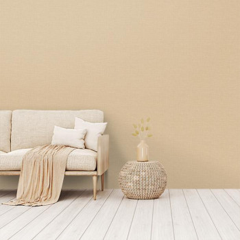 Luxusná tapeta s vinylovým povrchom, odtiene pololesklej béžovej, autentický vzhľad hrubšej textílie – striedanie hrubej a jemnej textilnej štruktúry.