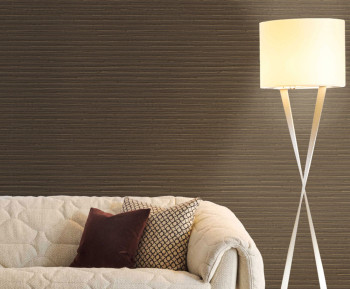 Luxusná tapeta s vinylovým povrchom, pololesklá textúra v hnedých odtieňoch, úzke prúžky metalické bronzové.