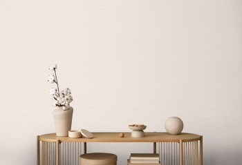 Tapeta s vinylovým povrchom, béžová, s nepravidelnými vodorovnými prúžkami, krupičková textúra.