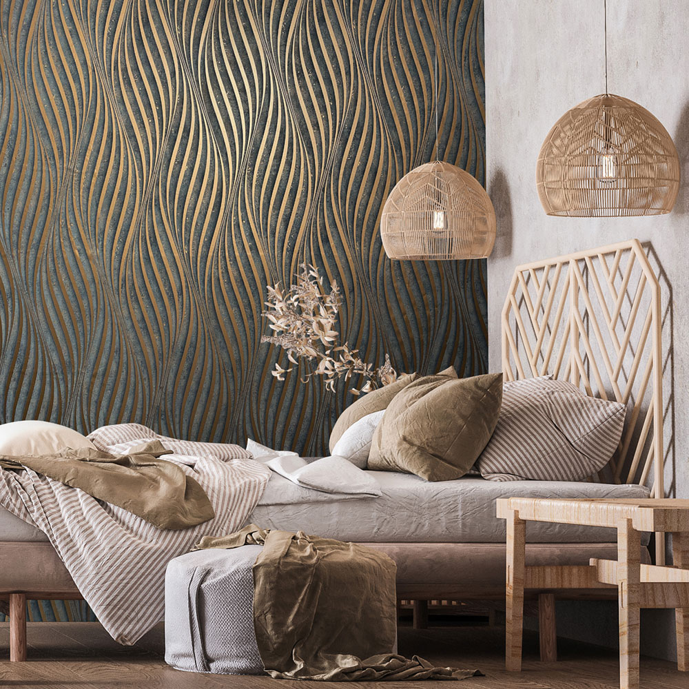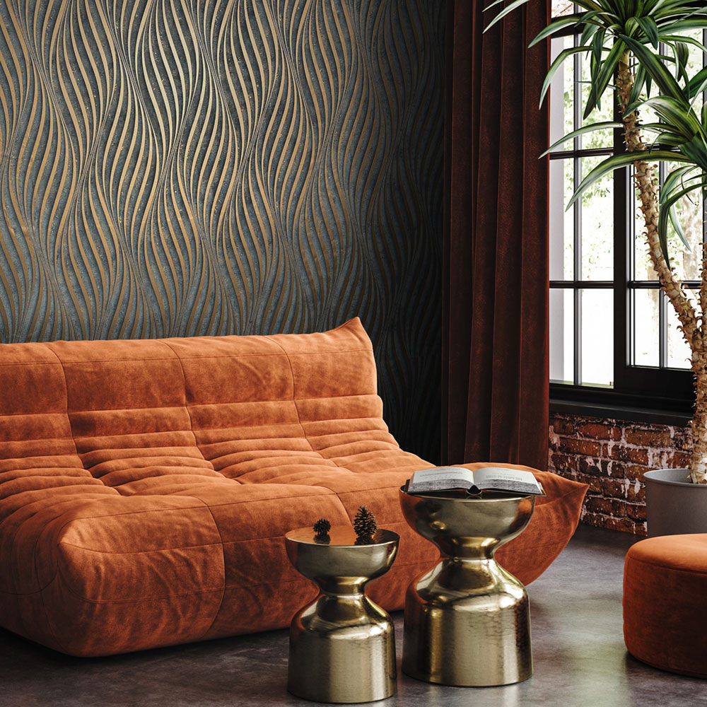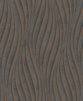 Hnedo-bronzová tapeta s vinylovým povrchom, reliéfný metalický vlnkový vzor.