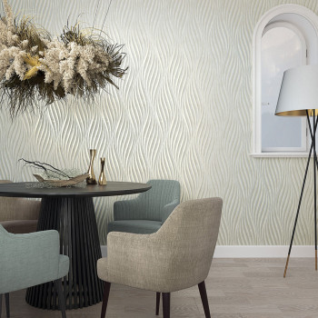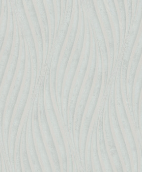 Sivo-zelená tapeta s vinylovým povrchom, reliéfný metalický krémový vlnkový vzor.