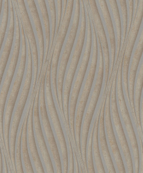 Hnedo-zlatá tapeta s vinylovým povrchom, reliéfný metalický vlnkový vzor.