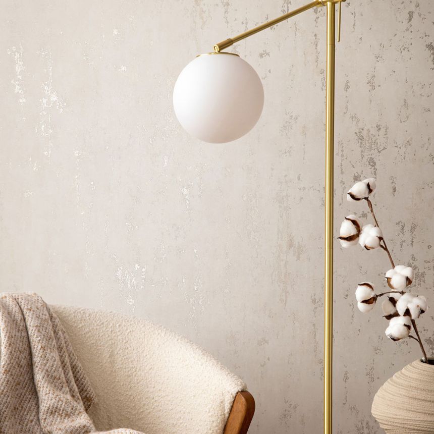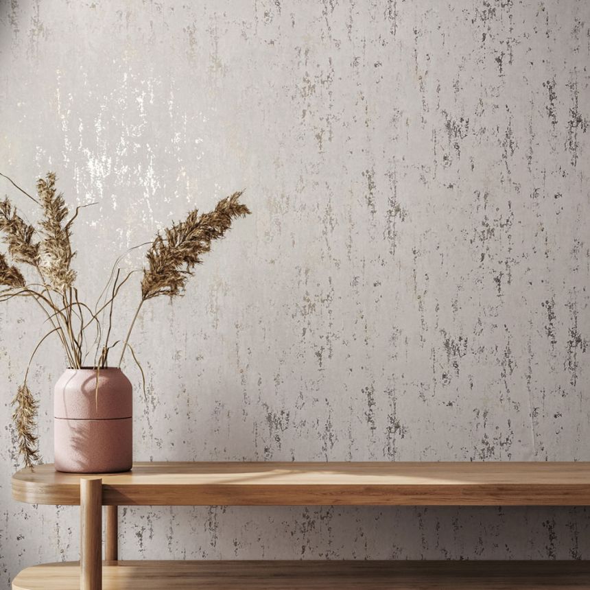 Tapeta s vinylovým povrchom, dekor krémovej a béžovej štukovej omietky, miestami zlatý lesk, jemná textúra.