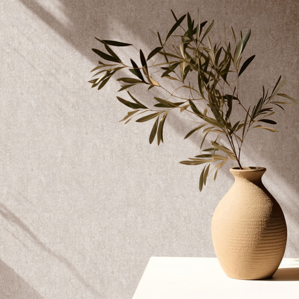 Tapeta s vinylovým povrchom, dekor béžovej štukovej omietky, jemná textúra.