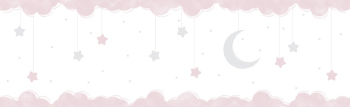 Motívy mráčikov, hviezdičiek a mesiacov na samolepiacej bordure.