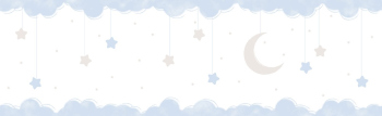 Motívy mráčikov, hviezdičiek a mesiacov na samolepiacej bordure.