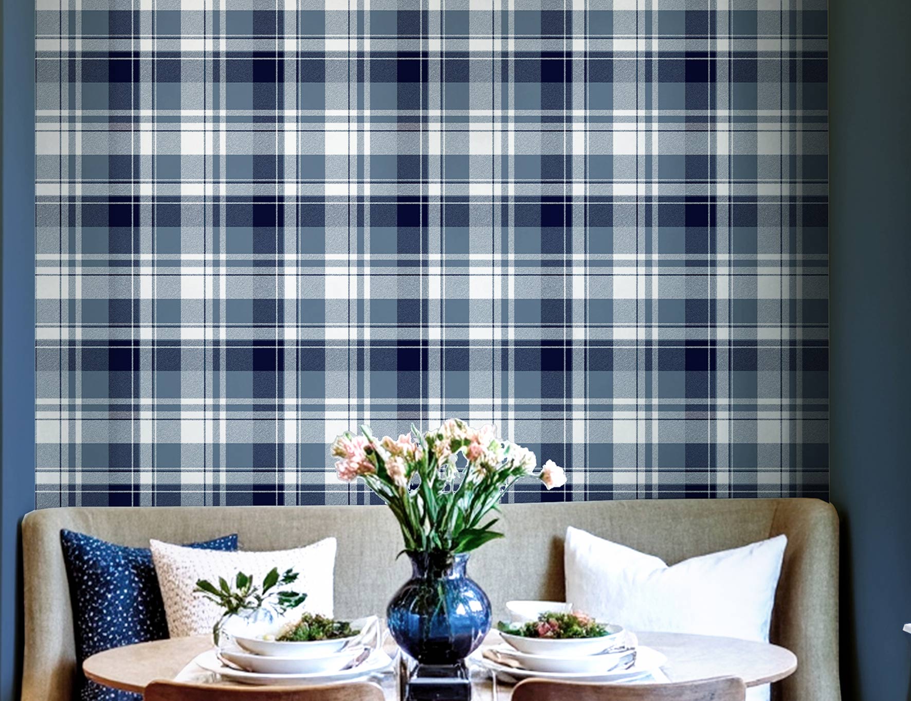 Tapeta, modrá, imitácia tartanovej látky, 8387, Blooming Garden 2, Parato by Cristiana Masi