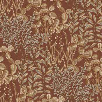 Tapeta, hnedočervená, listy a trávy, A78902, Inia, Grandeco