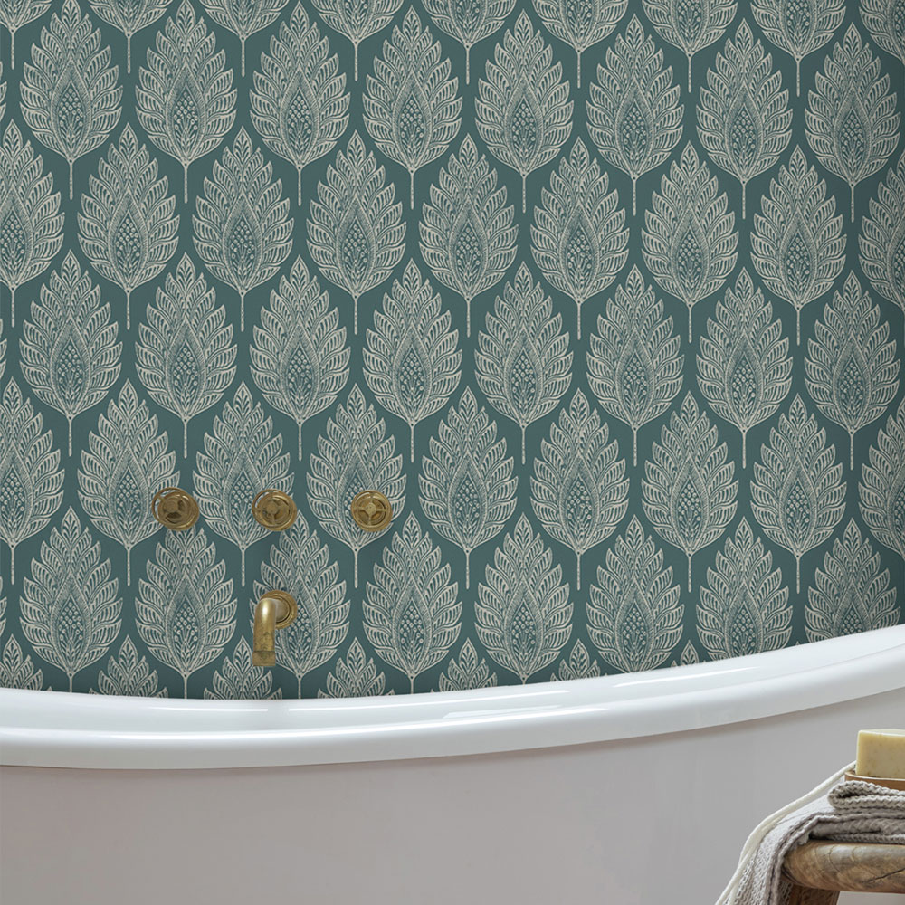 Tapeta, tyrkysová, listy, 142309, Jaipur, Graham Brown Premium