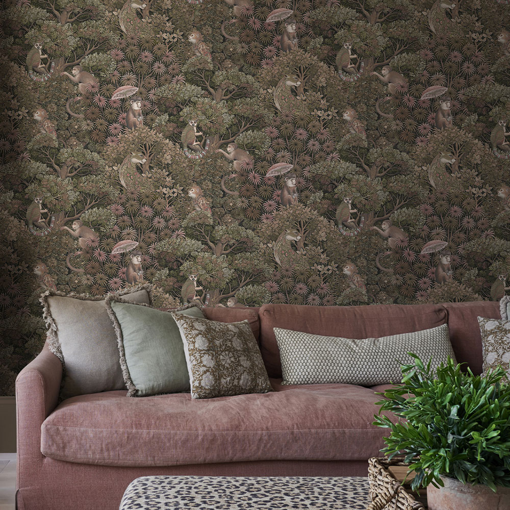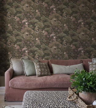 Tapeta, ružová, listy, opice, 142312, Jaipur, Graham Brown Premium