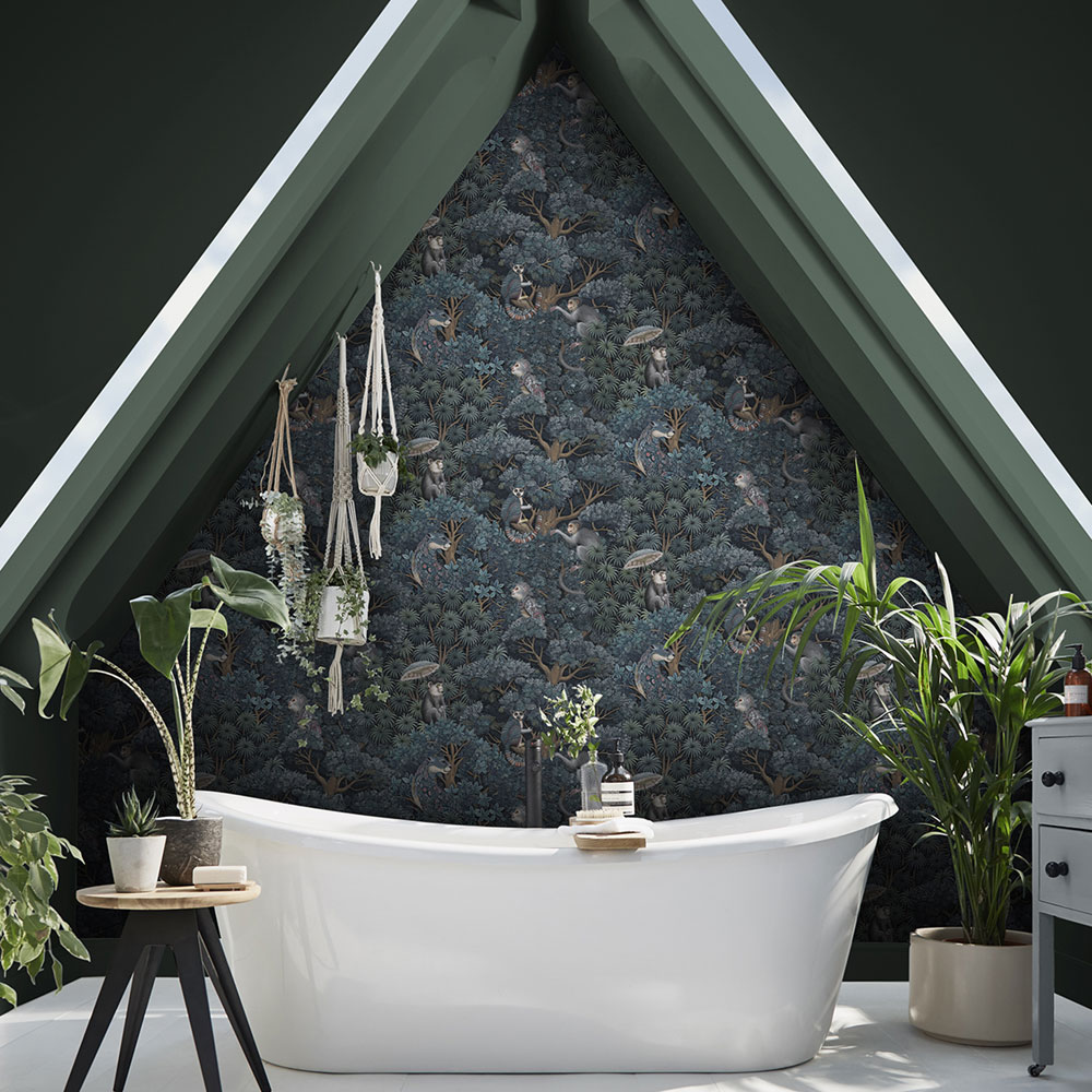 Tapeta, modrá, listy, opice, 142313, Jaipur, Graham Brown Premium