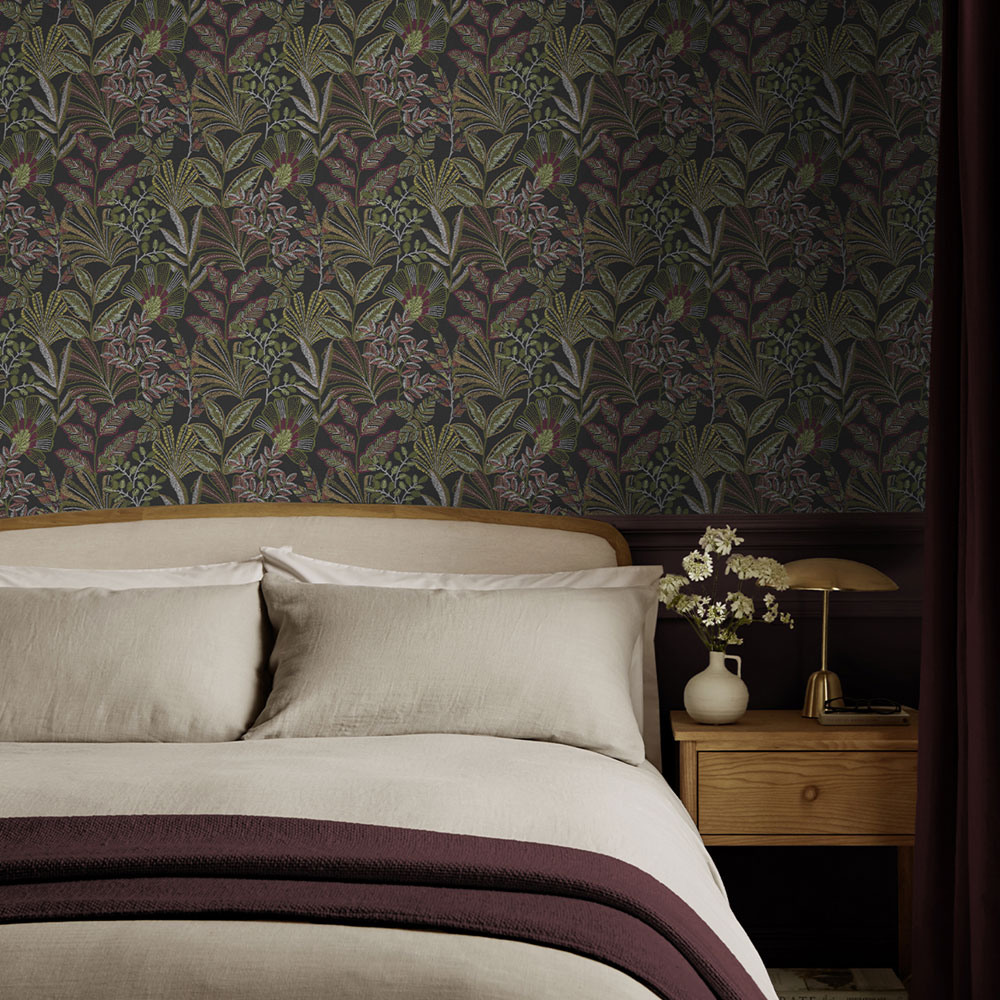 Tapeta, čierna, listy, 142318, Jaipur, Graham Brown Premium