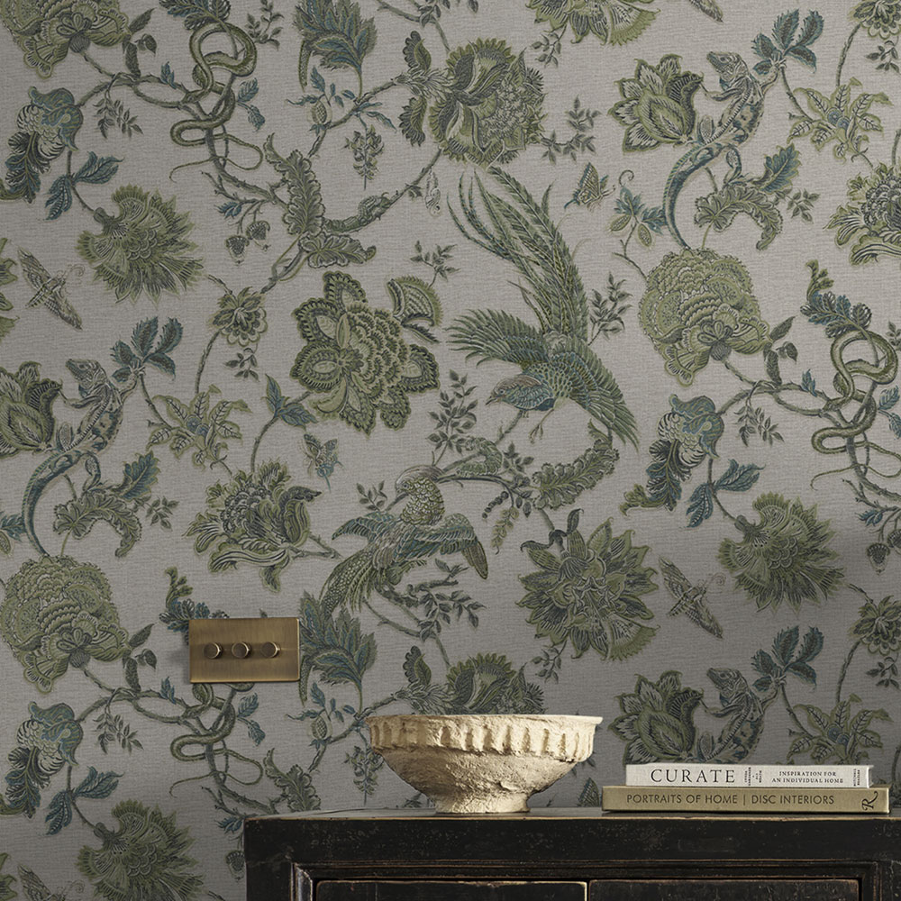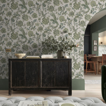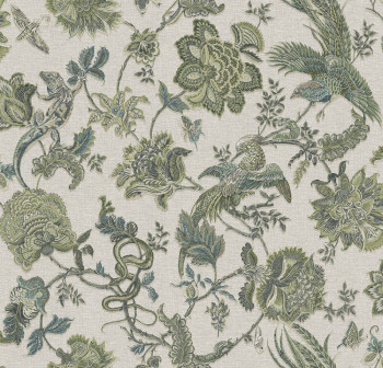Tapeta, béžovo-zelená, kvety, zvieratá, 143239, Jaipur, Graham Brown Premium
