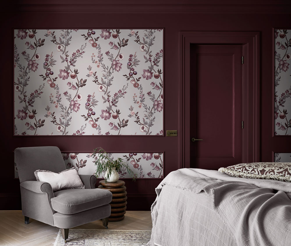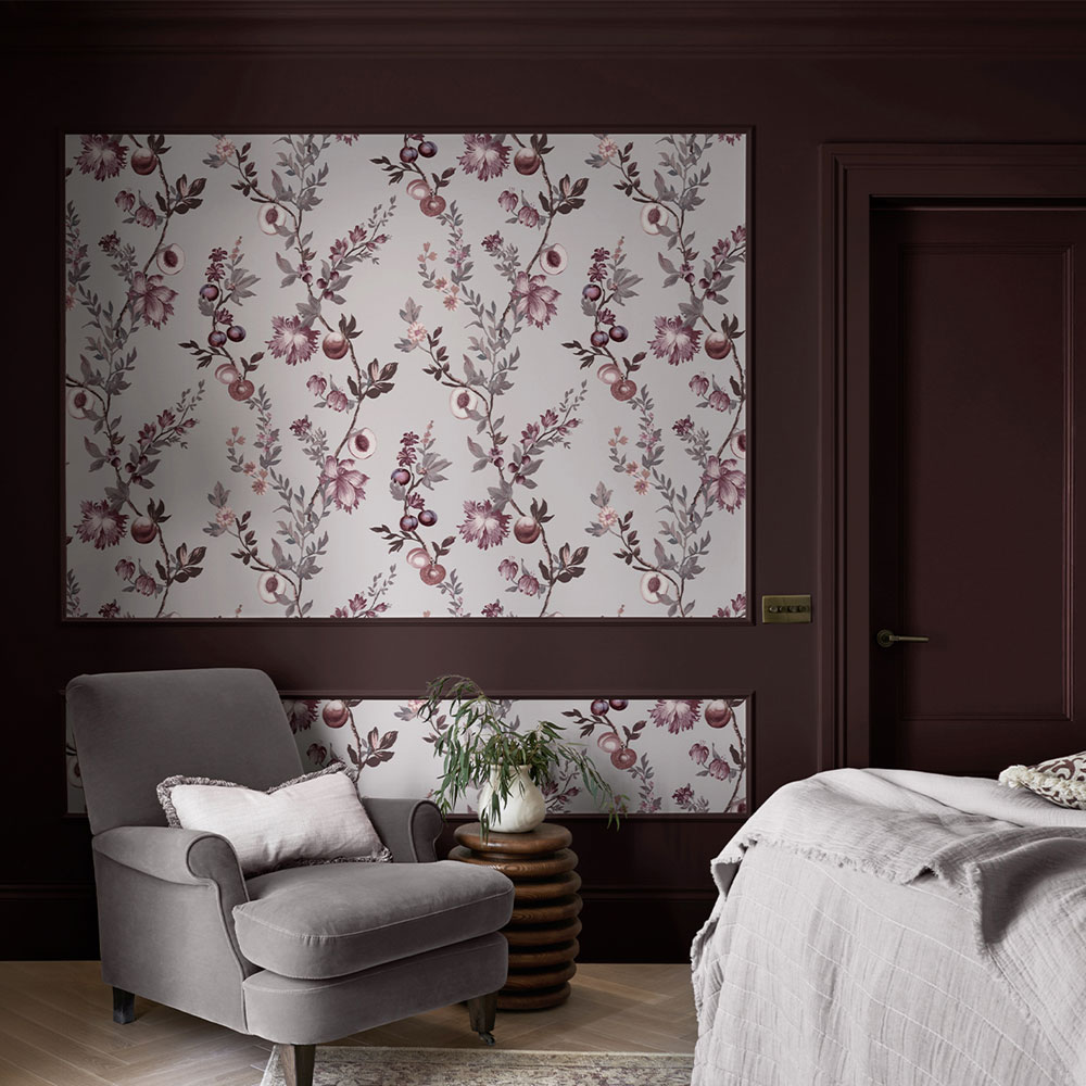 Nájdete tu výrazné kvetinové motívy – od drobných kvietkov na tmavom podklade, ktoré pôsobia odvážne, elegantne a trochu podmanivo, až po jemnejšie varianty na svetlom pozadí. Krásnym prvkom sú vetvy broskýň a ďalších ovocných stromov plné kvetov aj plodov, ktoré dodávajú tapetám prirodzenosť, sviežosť a romantickú atmosféru.