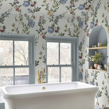 Nájdete tu výrazné kvetinové motívy – od drobných kvietkov na tmavom podklade, ktoré pôsobia odvážne, elegantne a trochu podmanivo, až po jemnejšie varianty na svetlom pozadí. Krásnym prvkom sú vetvy broskýň a ďalších ovocných stromov plné kvetov aj plodov, ktoré dodávajú tapetám prirodzenosť, sviežosť a romantickú atmosféru.