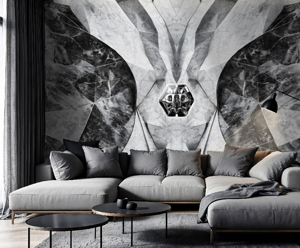Obrazová tapeta, čierna, sivá, mramor, tvary, logo, Z81067, 3x3 m, Philipp Plein 2, Zambaiti Parati