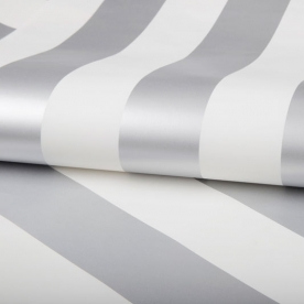 Súčasné trendy nadčasovým pruhom a prúžkom želajú. Sú kombinovateľné so vzorovými aj jednofarebnými tapetami, alebo samostatne dokážu vymedziť a zútulniť priestor. Strieborné metalické a biele pruhy na vliesovej tapete.