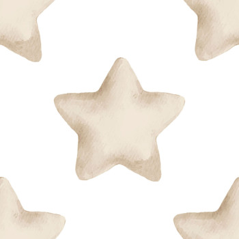 Vláknitá tapeta na stenu s jemnou štruktúrou, biely podklad, béžové hviezdy s priemerom 30 cm.