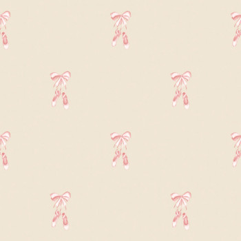 Jemná detská flísová tapeta na stenu, ružové balerínky na béžovom podklade.