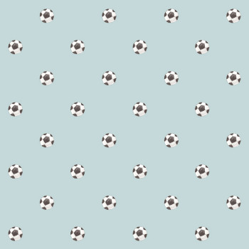 Hravá detská vliesová tapeta na stenu, futbalové lopty, modrý podklad, lopty v kombinácii čiernej, bielej a šedej farby.