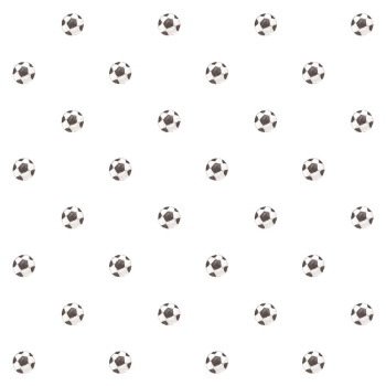 Hravá detská vliesová tapeta na stenu, futbalové lopty, biely podklad, lopty v kombinácii čiernej, bielej a šedej farby.